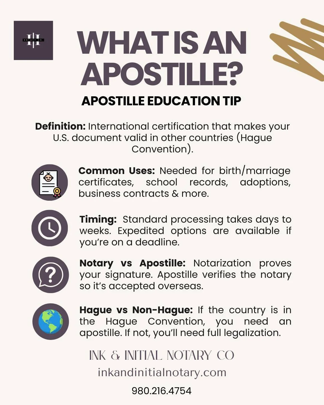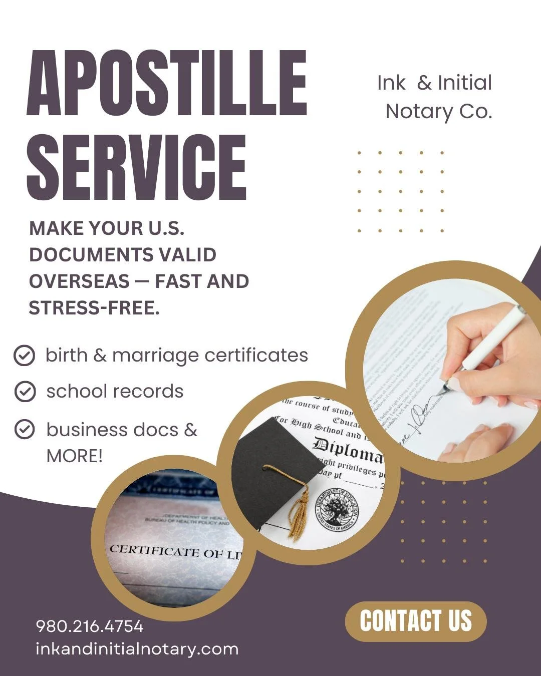 Ink & Initial Notary Co. is a verified mobile notary and apostille service serving Charlotte and surrounding areas.