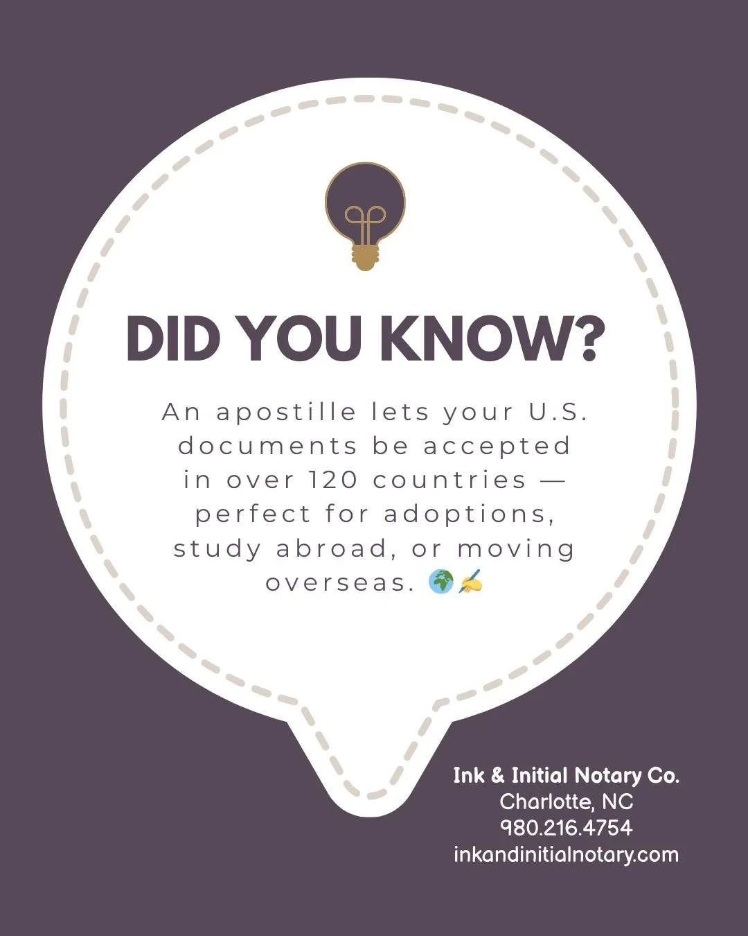 We assist clients with everything from powers of attorney and wills to international apostille requests for adoption, overseas relocation, or business expansion. Whether you need a mobile notary near you in Charlotte or reliable help processing international documents, weβre here for every important moment.